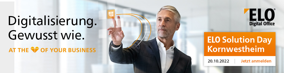 Nachdem der ELO Solution Day im letzten Jahr seine Live-Rückkehr feiern konnte, geht der persönliche Kontakt von Kunden, Interessenten und Digitalisierungs-Experten am 20.10.2022 ab 08.45 Uhr in eine neue Runde.